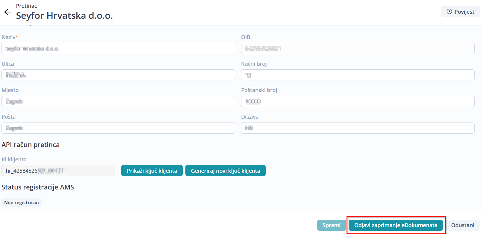 - Zatim se u FiskAplikaciji može potvrditi Seyfor adresa za zaprimanje eRačuna prema OVOJ uputi.